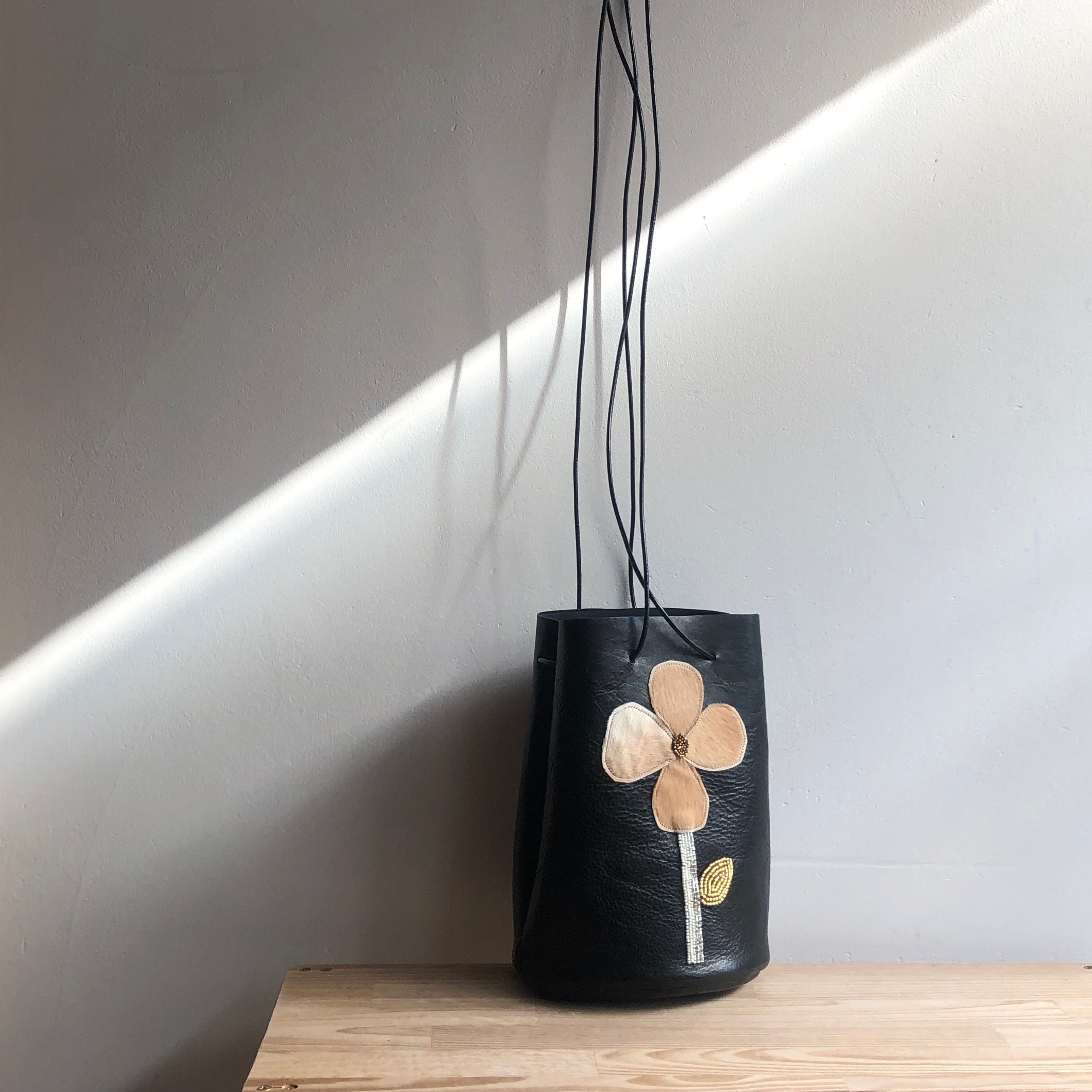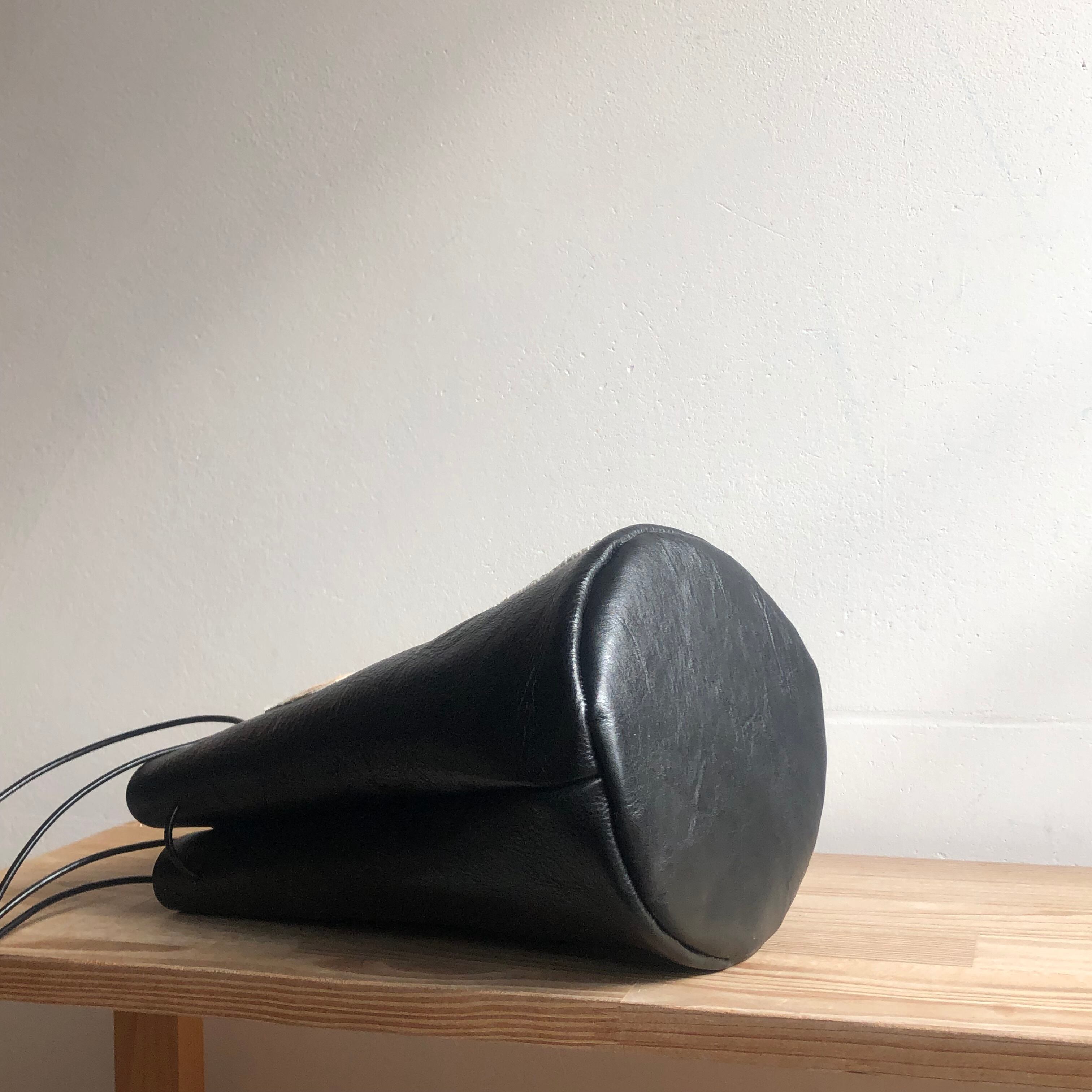 オートクチュールのある革巾着バッグ