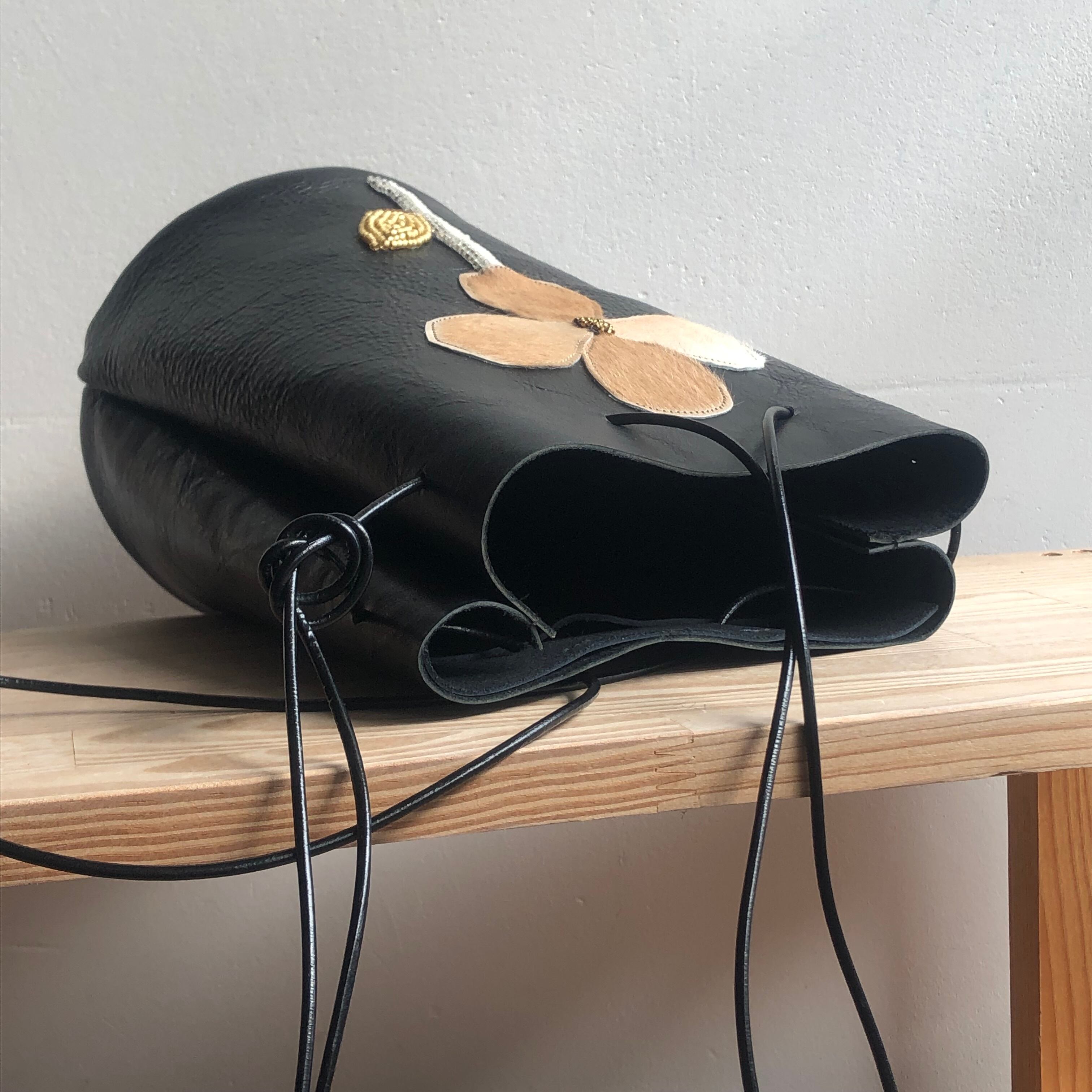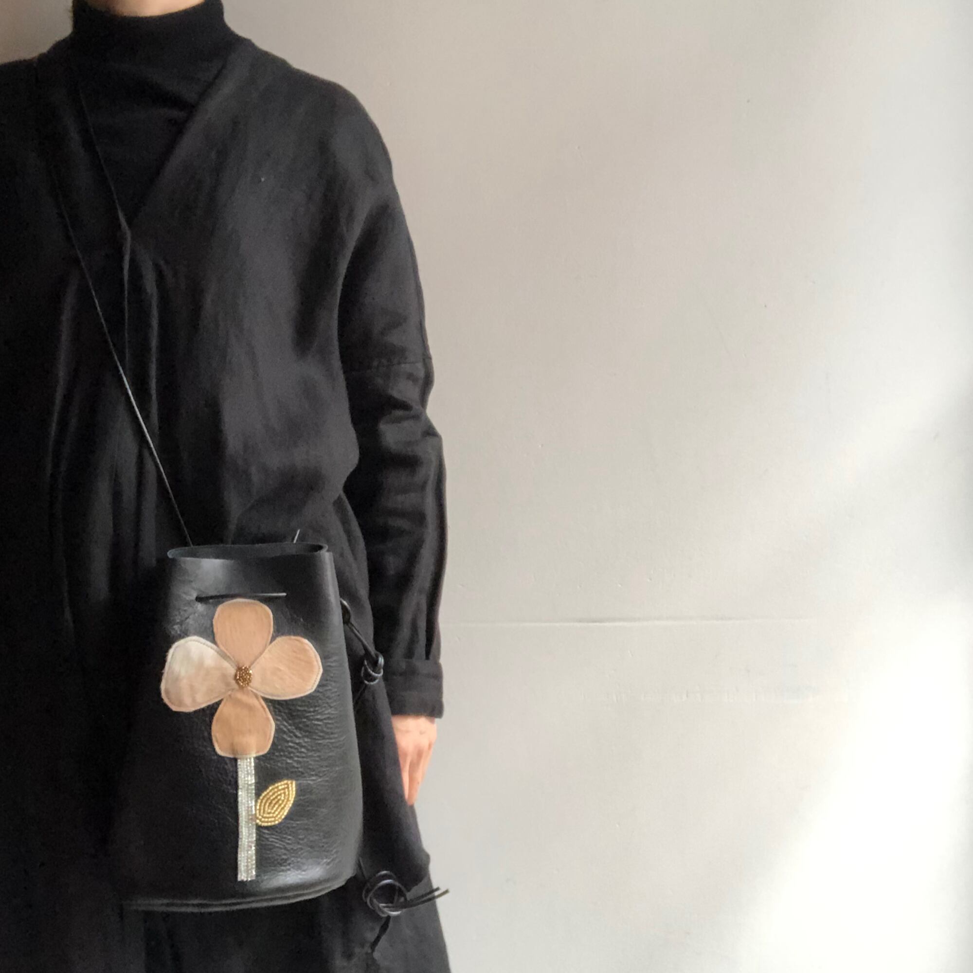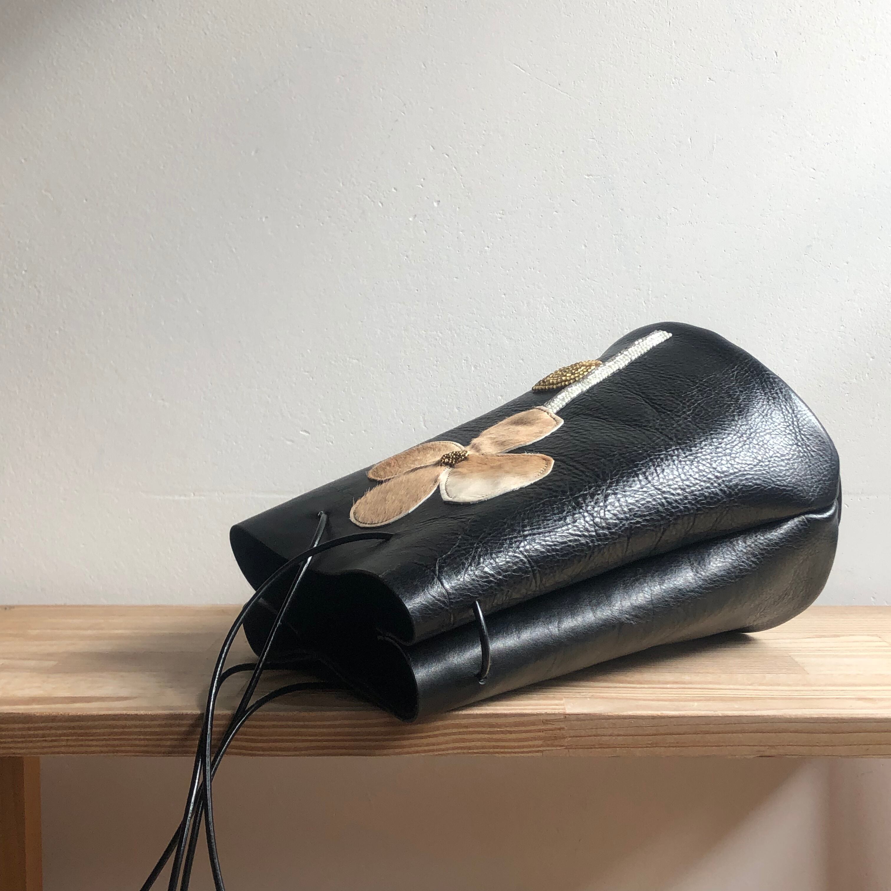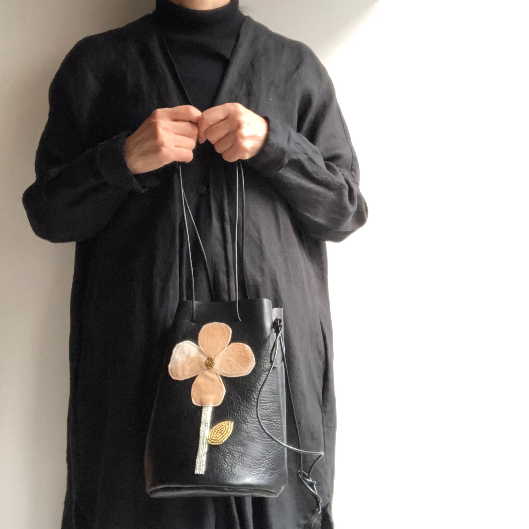 黒革とのコントラストが大変美しいバッグです。